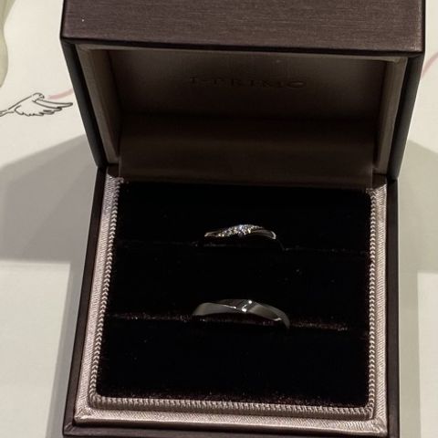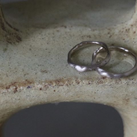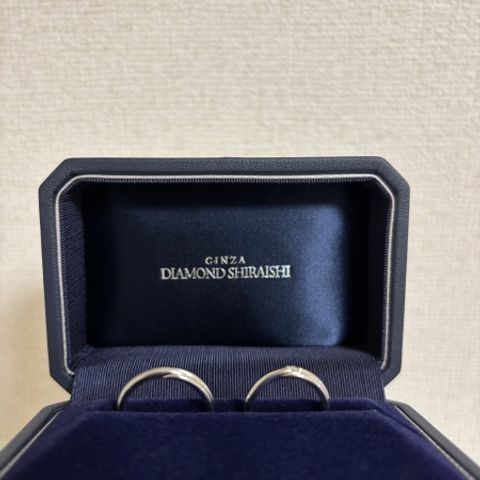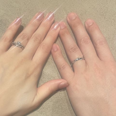 シンプルなのにオシャレなことに加え、パッと見た時に指輪の輝きが分かるところがお気に入りのポイントです!男性側の指輪も少しウェーブなデザインが入っていて、さり気ないオシャレで素敵です!仕事場でも気にせず付けられるので嬉しいです!