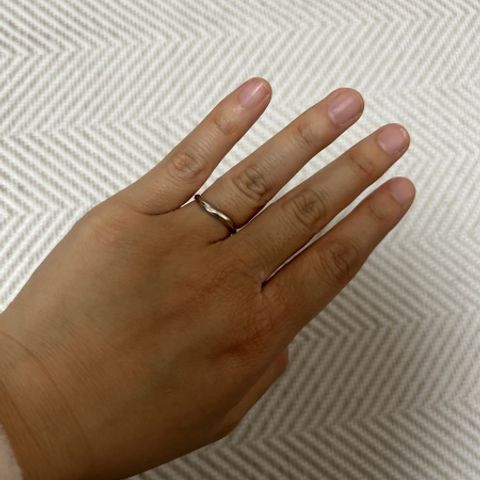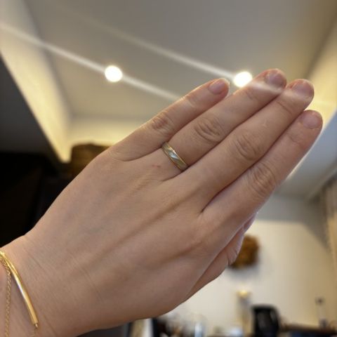 シンプルで手に馴染むところだと思います。仕事柄、あまり目立ちすぎるのは…と思っていたので、キラキラしすぎておらず、かつ自分の手に違和感のないデザインで、とても満足しています。色も理想通りで、いい指輪に出会えたなと思います!