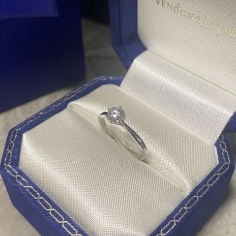 他ブランドよりもダイヤの輝きに白っぽさ、クリアっぽさがあり(ショーメの特徴でもあるそう)すごく綺麗に感じたのがポイントです。 ペアシェイプでちょっと珍しいデザインであること、石が大きすぎず普段使いしやすそうなのでこちらを選びました。