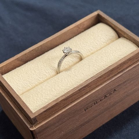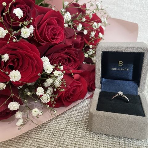 シンプルでダイヤモンドのきらめきがとても映えます。普段指につけていても、光が当たってキラキラと輝いており、婚約した実感がわきます。リングの太さとダイヤの大きさがマッチしていながらも、普段使いしやすいです。女性のロマンが詰まっています。とても素敵な指輪です!