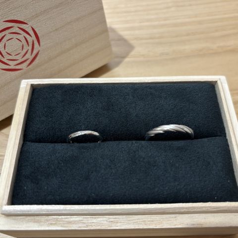 デザイン、色、形、自分たちで選んで、1から自分たちで作り、世界に一つだけの指輪がつくれてとても満足しています。お互いの指輪を制作させていただき、旦那さんが作ってくれた指輪をつけられることがすごくうれしいです。とてもいい思い出になりました。