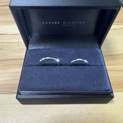 シンプルでつけ心地もとても良いです!!ダイヤの数は選択可能なため、自分の好みに合うように調整できました。 鍛造のため、丈夫で傷がつきにくいのも嬉しいポイント!! 斜めのラインがおそろいなのもお気に入りです!!