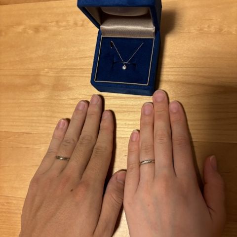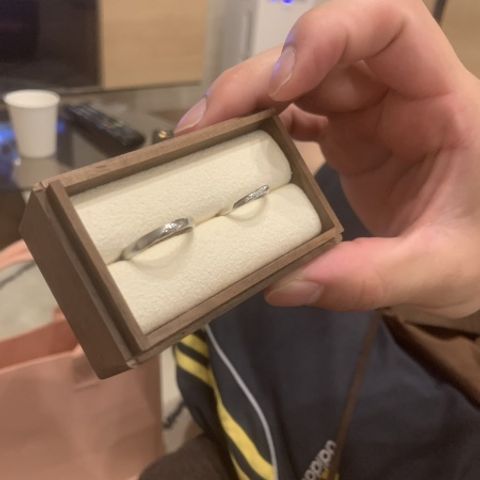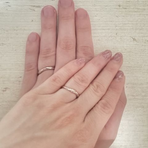 自分たちで好きな形や太さ、デザインを選べて、ふたりの思い出にもなる素敵な一生物の指輪が完成しました。普段の生活に馴染むような素材であり、かつ自分たちでデザインできたという思い入れがたくさんの指輪です。
