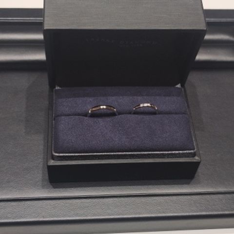 ピンクゴールドのラインが入ったデザインが他にはないもので、とてもよかったです。 また、それぞれの指輪に込められた意味も二人のつながりをあらわす言葉が素敵で、今回の指輪を本決定するまで意味で苦労しました。