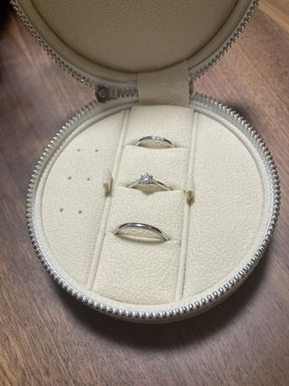 結婚指輪は2つで25万円以下で収めたかったのと k18の指輪を探していました。出来るだけ種類が豊富なのとシンプルで小さいダイヤがついてるのを探していた為こちらを買わせて頂きました! 婚約指輪はお出かけの時だけ重ね付けをしたかったので 王道のシンプルな物にしました!