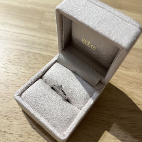 普段のお出かけ時でも付けられる丁度いいダイヤの大きさで、ふと手を見た時にキラキラしていてとても嬉しい気持ちになります。シンプルなデザインなので、結婚指 輪との相性もとてもよく重ね付けできるところがいいです。