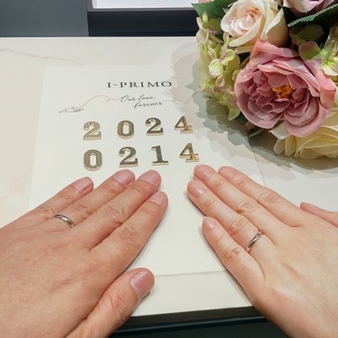 新郎用は普段使いしたいのでシンプルなのを探していたのですが少しラインが入っててストレートのともまた違った良さがありました。新婦用は派手すぎないけど可愛らしいのを探していたので小さなダイアモンドが入っててそこまで目立たずおしゃれにつけることができると思いました。
