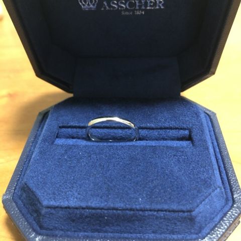 理想のデザインで、指に合うとおすすめされたもので 2人のデザインのバランスも良くて気に入っています。 ダイヤの明るさが年齢を重ねても指が綺麗に見える配慮も、華美すぎない感じも気に入っています。 店舗に行くまではウェーブかV字のデザインにしたいと思っていましたが、 指に合うのはこちらとご紹介いただいて気に入ったデザインを購入できて、婚約指輪との重ね付けも考慮していただいて満足しています。