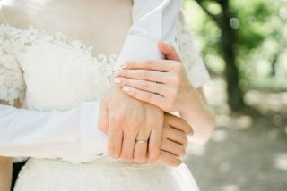 主人にちゃんと毎日着けていてほしいと考え、指輪選びは主人に完全に任せました。主人の条件は「ある程度幅と厚みがある」「平打ちで丸みが全くなく、角張っている」「何かワンポイント個性がある」「プラチナ艶消し」「鍛造製法」「夫婦できちんとお揃い感がある」と厳しい条件。完全に条件が揃っている指輪を探すのはなかなか大変で、色々なお店を回りました。数ヶ月かけて探したところ、パーフェクトなこちらの指輪に出会って、即決でした!私のは真ん中に横ラインが入っており、ライン上に均等に8粒メレダイヤが埋まっています。主人のはダイヤがないバージョン。どちらも幅は同じです。主人も私もとても気に入っていて、外すことなく毎日着けています。