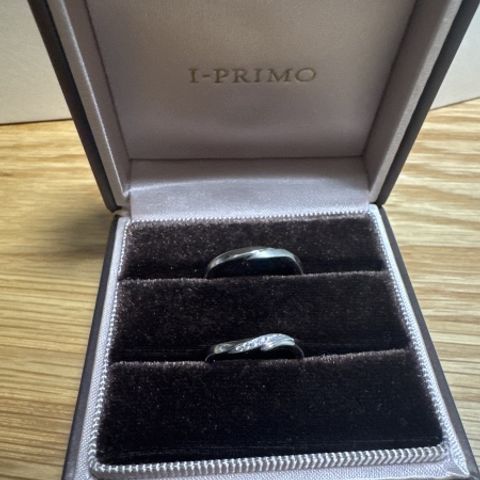 I-PRIMO ユリシーズのペア指輪を購入させていただきました。初めはもう少しダイヤが多い方がいいかな、と思いましたが、つけてみるとこれくらいの方が服と合わせやすいかな、と思いこちらにしました。新婦はウェーブを探していたので、ぴったりでした!新郎の波のような模様もとても気に入っています。