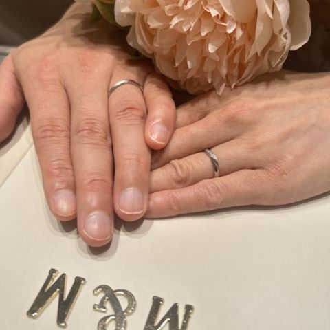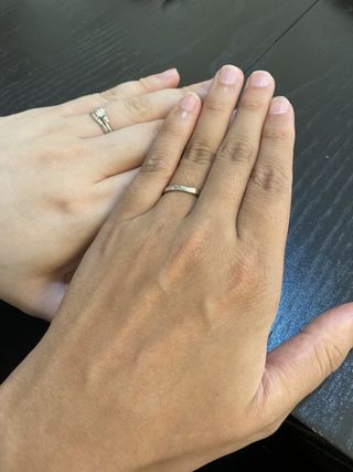 初め指輪のデザインやカラーがたくさんあり、どの指輪が自分たちに合っているのか迷いました。何度か試着した中で、付けた指にとても映える指輪を見つけることができました。二人で見つた指輪で、まさに共同作業でした。一生大切に付けていきます。