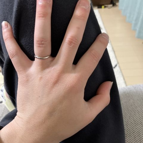 ダイヤモンドの輝きが気に入っており、事あるごとに見つめてしまいます。 またゴツ過ぎず華奢過ぎないデザインなので、飽きる事なくつけ続けられそうです。 旦那さんも指輪の主張し過ぎないラインのデザインが気に入っています。