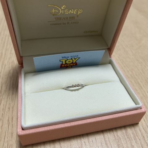 リトルグリーンメンをイメージした指輪で感謝永遠にという意味を込めた指輪で凄く素敵です。ダイアが3つ付いているのですが、これは横から見るとリトルグリーンメンに見えるので、キャラクターを主張すぎずいい感じのデザインです。