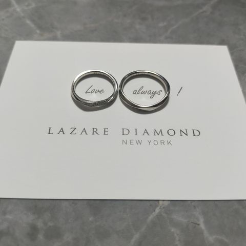 デザインがとてもシンプルで、日常使いがとてもしやすい指輪です。流行りや廃りに左右されない、デザインだと思います。私たちは指輪の内側にイニシャルと日にちと記念日の石を入れました。とても気に入っています。