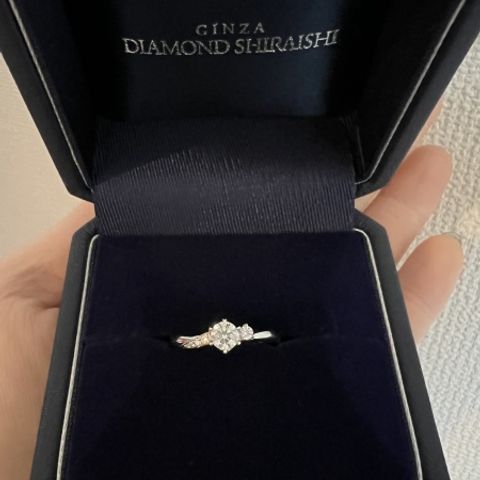 最初は一粒のものを探していたのですが、横もダイヤが付いているものを見た時可愛すぎて気に入りました!!ダイヤの形も四角くティファニーカットになっているのも少し大人っぽさもでて、長く使えそうだなと思いました♡