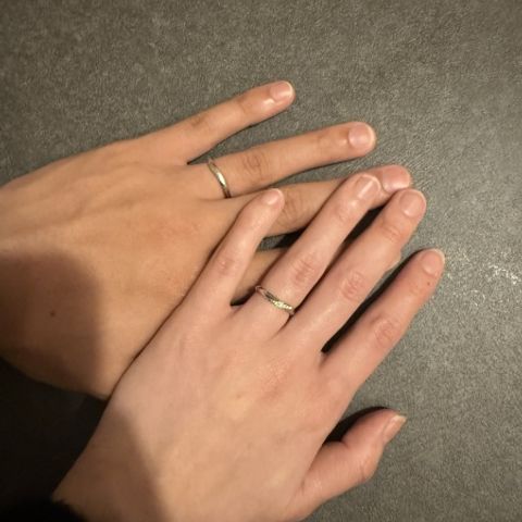 ペア感を感じられる2人全く同じデザインのものを探していましたので、ぴったりのリングでした。真ん中はマット加工にし、女性側はダイヤを一つつけました。色や素材、ダイヤありなしなどたくさんのパターンから自分たちの好みのものを選ぶことがとてもよかったです。細身のリングなので、付け心地がよいところも気に入っています。