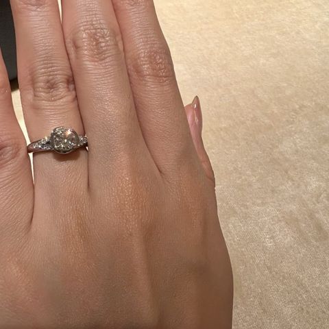 シンプルですが、エレガントさがでていてこのデザインで探していました。0.35-0.40ctの大きさで探していて、質が1番いいダイヤモンドが丁度見つかったので、すぐに決めました。昼夜問わず輝いており、気に入っています。