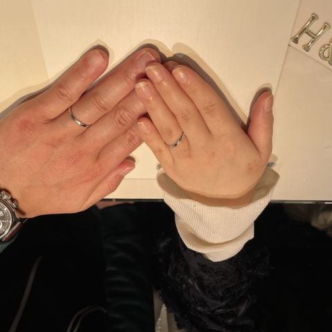 全ての指輪をつけてじっくり自分たちにあう指輪探しができる。一つ一つに意味が込められていて、どれもいい意味合いをもとにつけられることが魅力に感じました。そのなかでも1番私達にとってデザインと意味合いが気に入りこの指輪にしました!