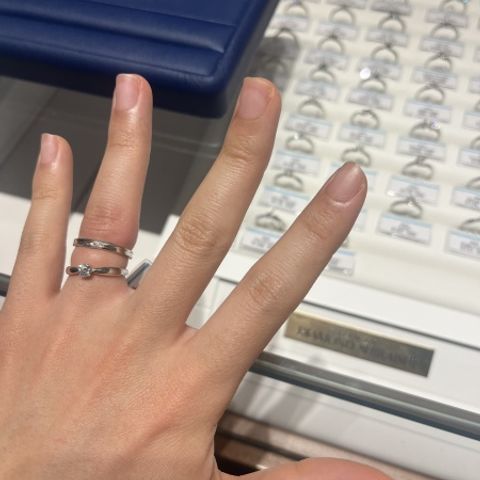 ぽっちゃりで指も短くて太めなのでウェーブの指輪が希望で細めの指輪なのに丈夫な素材だと聞き試着させてもらったところ指に馴染んでいい意味でつけてないみたいでした!指輪を日頃つけないので私にはすごくよかったです☺︎ダイヤモンドに憧れもあったけど目立つのは、、って思ってたところ日常でもつけやすいデザインで、もうすぐ試着して決めました!