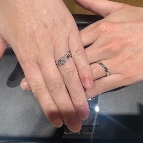 自分の指に合った指輪の形を診断して、好みのデザインを選び、一つひとつ二人で探して、納得のいく指輪を見つけることができました。 結婚指輪はペア感があるもので、婚約指輪と重ね付けしても可愛いものを選ぶことができて満足です。