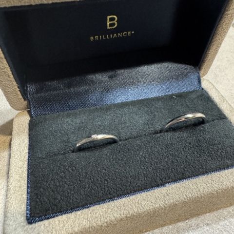 お互いシンプルな結婚指輪が良くて、女性側にはダイヤがなくてもいいくらいに思っていました。実際に指輪を付けてみて自分の指が綺麗に見えることや、シンプルなダイヤであることにこの指輪がいい!とすぐに思いました。