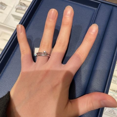 デザインは理想のデザインであり、特別な日だけでなく、お出かけの際に結婚指輪と重ね付けしたくなる指輪です。結婚指輪も婚約指輪に合わせてプラチナを選びました。重ねるとゴージャス感が増し、何度も見てしまいます。