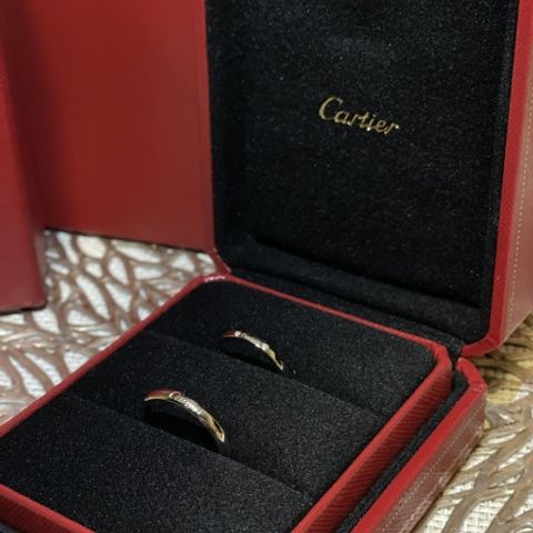 シャンスエターナルという、幸運が永遠に上昇していくという意味のリングにしました。 婚約指輪として夫が選んできてくれ、プロポーズで渡してくれました。 その後2人で店舗へ行き、同リング名の結婚指輪を選びました。このリングは婚約指輪のために作られたものであり、逆もしかりで結婚指輪のために作られた唯一無二のものだそうで、これ以上完璧で完成された組み合わせのものはありません。他のものにしようという選択肢は私たちの中で全くなく、即決しました。