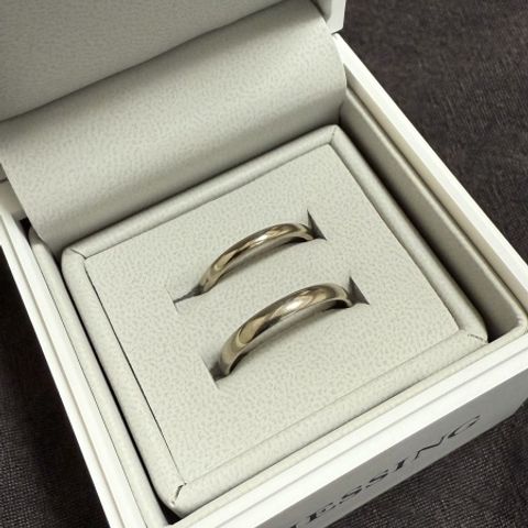 普段使いしやすいよう2人ともシンプルにしました。お互いの指紋を内側に刻印しました。 右:角度を変えるとキラキラしていてずっと眺めていたいデザインです⭐︎ 左:マットな質感で、少しウェーブのあるシルエットになっており気分によって変えられるデザインです
