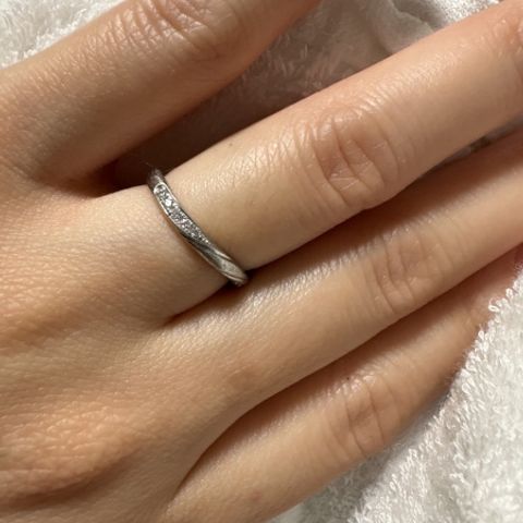 婚約指輪は結婚指輪と一緒に重ね付けできるようなデザインを探していました。こういったエタニティリングは他社さんでもありますが幅が広すぎるものが多く、しっくりこなかったのですが、こちらの華奢なデザインに惹かれ選びました。
