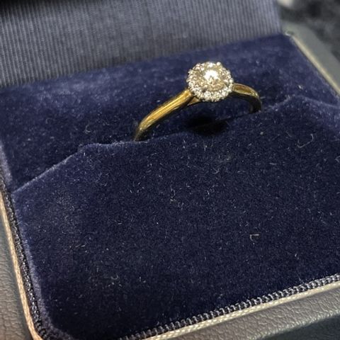 中央のダイヤの周りに細かいダイヤがついていて、キラキラ華やか。つけていると気分が上がります。 遠目に見るとすごく大きなダイヤに見えるところもお得感がある。 リング部分のダイヤは不要と感じたので、それはなくしました。