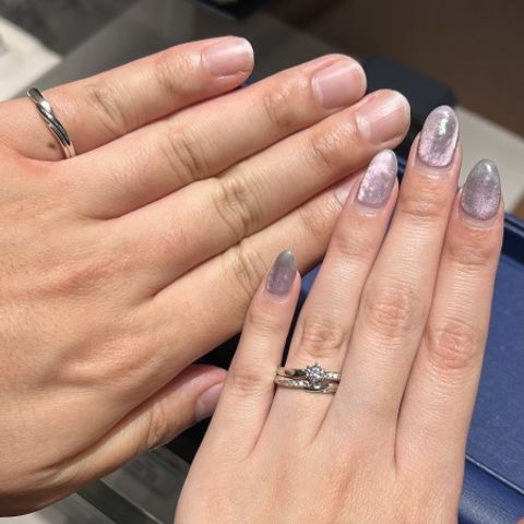 デザインがたくさんあり、彼とどの指輪にするか悩みまくり、3回ほど来店してようやく決定しました。最終的には彼とは別のデザインを選ぶことになりましたが、付け心地とダイヤのキラキラさがとても気に入っています!