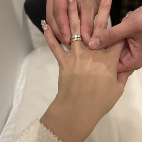 今回選ばせていただいたのは結婚指輪で、ウェーブの両サイドにダイヤが埋め込まれているデザインのものでした。 デザインがとても気に入っており、ダイヤの数も多すぎず少なすぎず、とても華やかでお気に入りです。 これから何十年先もつけていくものになるので、満足のいくものを選べてよかったです。