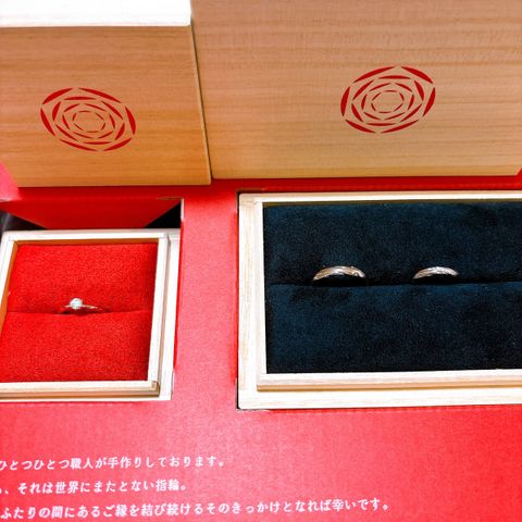 結婚指輪を選びました。サイドにもダイヤが入っているデザインが気に入り、即決しました。セットの指輪にはこだわりすぎず、お互い気に入ったものを選びました。届いてからも満足しています。入籍はまだのため着用はしていまけんが、家では時々つけています。たのしみです。