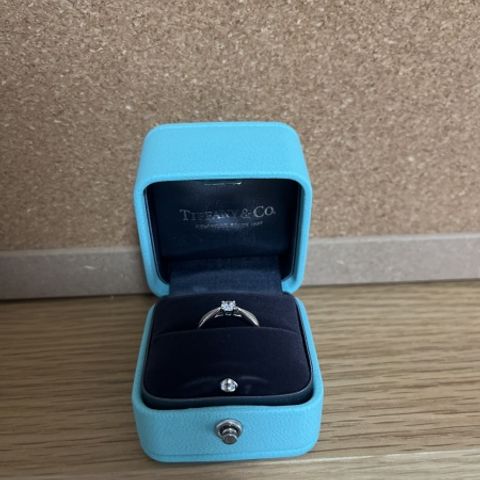 着け心地がとても良く、プラチナのリング部分も美しい艶があります。中央に向かって絞りが入っているため、V字のリングとの重ね付けが合います。シンプルながら可愛らしいデザインです。ティファニーブルーのボックスも特別感があり、お気に入りです。