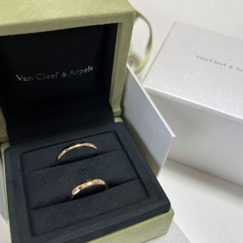 婚約指輪をたくさんつけたかったので、v字のリングを探しておりました。単品でもキラキラしてほしいけど、TPOを選べるように、前後両面v字という珍しい和光のリングにしました。元々ショーメがほしいと思っていたのですが、お値段の割にダイヤか小さく(そこが上品でもありますが)、物足りなくなるような気がしたので、和光の大きめのダイヤのついたv字リングに一目惚れでした。 結婚指輪単品でも、キラキラと眩しいくらい輝いてくれます。また、v字はやはり指が細く、綺麗に見えて、いつも嬉しい気持ちになります。