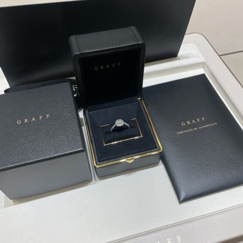 グラフのアイコンシリーズは昔からの憧れで、婚約指輪はこれが良いとプロポーズ前から考えていました。笑 メインの大きい石のまわりを小さい石で囲っているので実際のカラット数よりも断然大きく見えます。 ちなみにアイコンはネックレス、ピアス、などシリーズでありますが、指輪以外のものを先に購入する際、あまり石の大きいものにされると指輪を選ぶ時により大きい石にしないとバランスが…と思うのでお財布と相談の上購入されるのが良いと思います(^ ^)