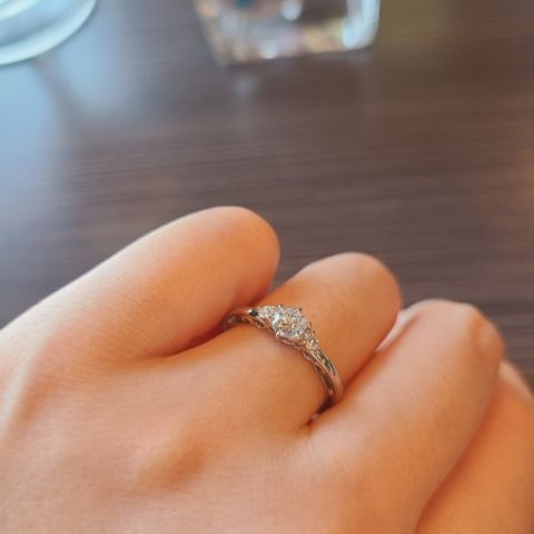 一輪の花が咲いてるように見えるデザインや、ダイヤの輝きが大きく見えるところに惹かれました。 また、指輪の付け心地もよく、送った相手にはデザインも好みだと非常に満足していただけました。 ダイヤも様々な大きさから選んだ指輪に合うものを一緒に探していただき、後悔のない指輪選びができたと思います。