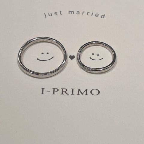 指輪は主人のも私のもホワイトゴールドで、主人は王道のシンプル、私のはダイヤが入ったものになります。重ね付けしたかったのと、普段から常に付けていられるもので選んだため、服装も選ばず、どのシーンにも使用できます。