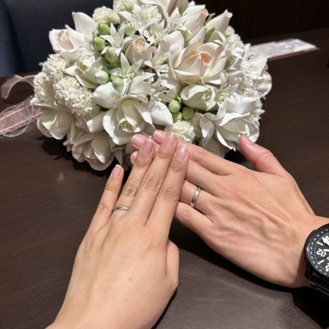 傷が付きにくく丈夫なものを希望していたので、強度のある鍛造の指輪を作成していただきました。デザインも自分たちの希望通りに作成していただき、スマートな仕上がりにしていただきました。着けると手が綺麗に見える点も非常に気に入っております。