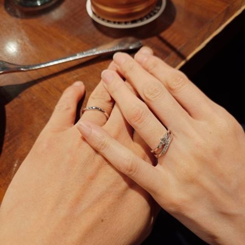 デザインが和をモチーフにしていて、とても素敵です。 一つ一つのデザインに想いが込められているので、自分の想いに近いものを選ぶことができました。ダイヤモンドについても詳しく説明してくださり、顕微鏡で見ることもできたので、細部までこだわってオーダーすることができました。結婚指輪は、お互いに違う色でも対応していただけたので、一番似合うお気に入りの指輪になりました。