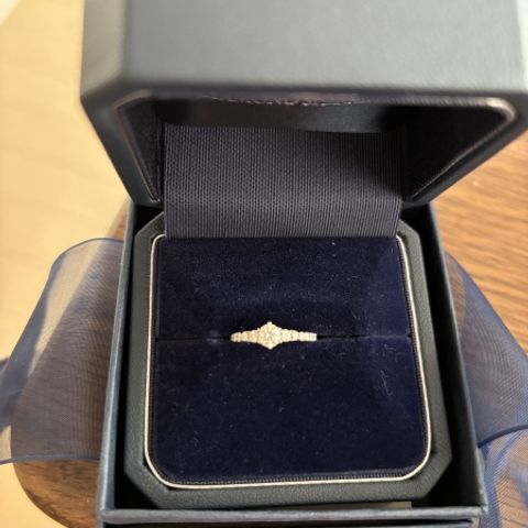 まだ結婚指輪は決めていなかったので、婚約指輪はとにかく自分の好きなデザインを購入しようと決めていました。手が小さめなので華奢で繊細なデザインがいいなと思っていました。 私が購入したクラウンは、サイドのダイヤがキュッと強弱をつくようにデザインされ、リング部分も華奢になっており、中央のダイヤを引き立てるようなデザインが気に入りました。仕上がりは「ロイヤルアッシャーブリリアントカット」でお願いしています。見え方の好みもあるかと思いますが、私はこのカットのダイヤが白っぽく明るく見えるのが気に入っています。 外資ブランドですが不思議と着け心地が良く私の指に合っていました。
