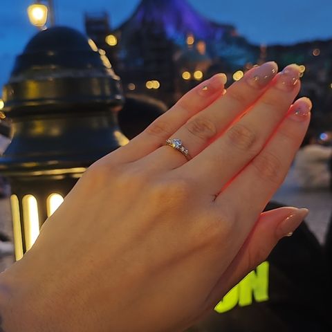 "婚約指輪といえばこんな形"というイメージ通りの指輪でした。指輪の形が特に気に入っています。ダイヤモンドのサイズも様々ありましたが、付けた時にワクワクするようなサイズ感で、でも主張しすぎないところが良いと思います。