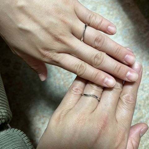 曲線が入りながらもシンプルなデザインで指を綺麗に見せてくれるデザインがお気に入りです。また婚約指輪と結婚指輪を重ね付けしても自然で、普段使いもしやすい形を決めたので活躍の機会が増えそうです。楽しみにつけます。
