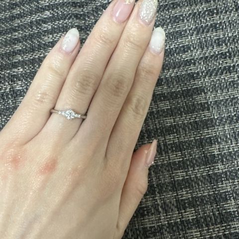 リングは細く、ダイヤモンドも小さくして普段からつけてもらうことを意識して選びました!他メーカーとも比較してダイヤモンドの質が良くて納得して選びました! 近隣の店舗もみたり下調べもした結果喜んでもらえました!