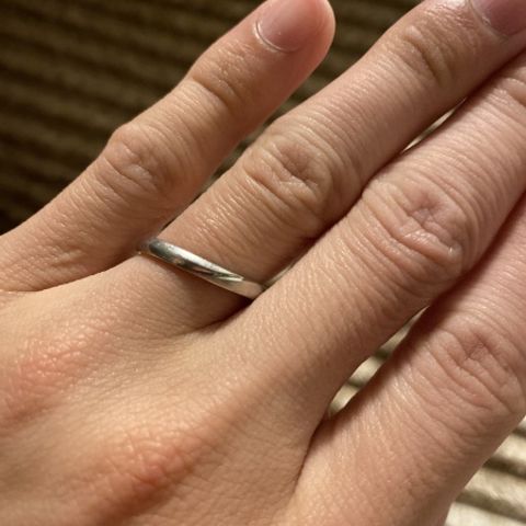 シンプルな形よりも、少し特徴のある形が好きなのでウェーブがかかっているデザインにしました。指が綺麗に細く見えます! 小さいダイヤも入っているので、キラキラしていて、つけているのを見ると結婚したんだなってうれしくなります。 婚約指輪は、同じブランドの違う種類の好きなデザインのものにしました。同じウェーブなので重ね付けにおすすめです!