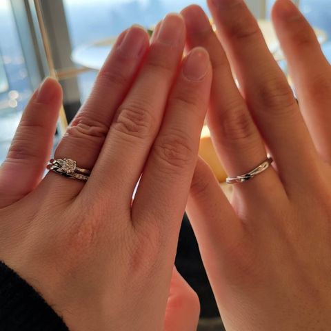 婚約指輪は自分で選びたいと思い彼氏に伝え色々な店舗を見に行きました。婚約指輪の選ぶポイントは一目惚れするかどうかでした。フォーマルハウトとウェスタリスは重ね付けをすると隙間なくピッタリ重なるため相性抜群です。他のブランドではどうしても隙間が開いてしました。唯一無二感と婚約指輪の王道感があり一目惚れして購入となりました。