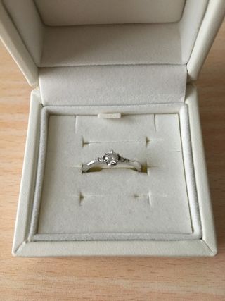 ダイアモンドはVVS2のグレードなので、美しい輝きです。リングは細めでシンプルなので、手の小さい私には、ちょう良いです! ダイヤの大きさは、あまり大きくないですが、その分、価格が抑えられてとても満足しています!