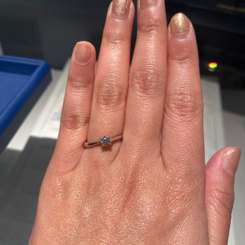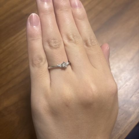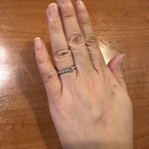シンプルすぎず、派手すぎないので 普段使しやすいデザインで気に入ってます。 ダイヤモンドの輝きがとても綺麗で とても華やかにみせてくれて見てるだけでとてもテンションが上がります。 指輪のつけ心地もよくてとても素晴らしいです