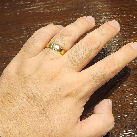 鍛造製法なので強度があります。デザインはシンプルなものになりますが、その分、どのような状況でも違和感なく装着できると思います。 シルバーにするか悩みましたが、肌の色が少し濃いのでゴールドにしたところ、うまく肌に馴染んでいるように感じます。