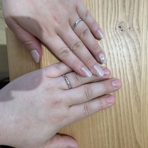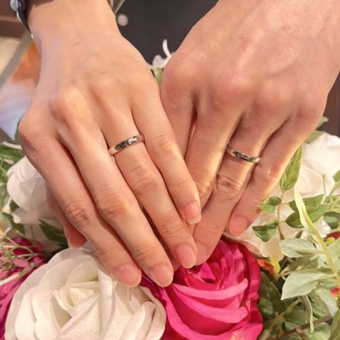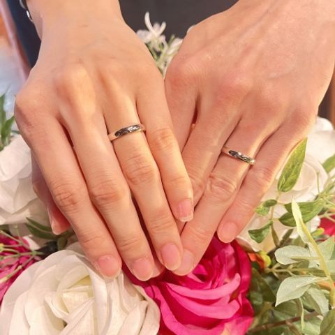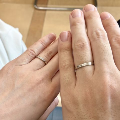 毎日着けれる指輪を探していたため、飽きのこないシンプルなデザインで、価格が高すぎない物を探していました。男性の方は装飾のないシンプルなデザインで、女性の方は石が埋め込まれている部分にねじりが入っているデザインでした。どちらも細身の指輪ですが、入れたい刻印をしっかり入れられて、手になじみ、私達に合った指輪を購入できました。
